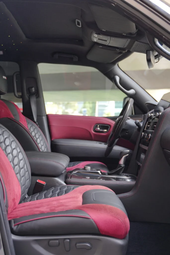 The NISMO variant features a more powerful engine, sport-tuned suspension, and aerodynamic enhancements that give it sharper handling and stronger acceleration compared to the standard Patrol. Its bold exterior design and signature NISMO accents make a commanding visual statement.